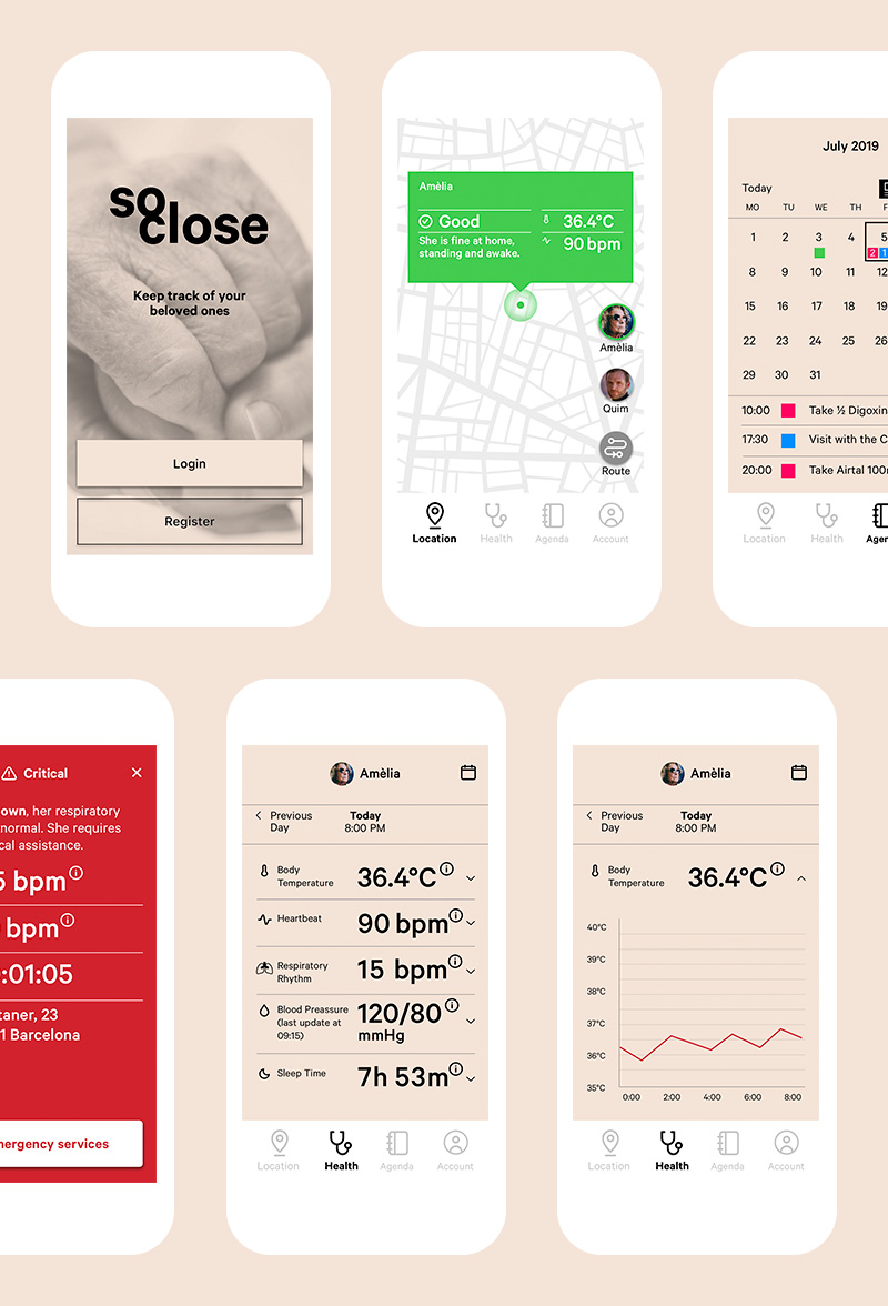 It consist of two elements: the SoClose App, on the one hand, and a wearable SoClose Wristband paired with the app and worn by the beloved under supervision, on the other: