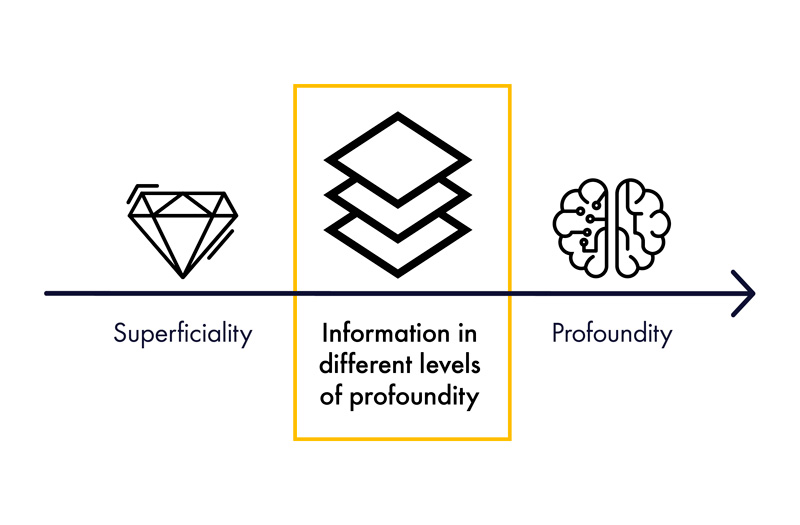 We suggest profoundity and avoid superficiality by presenting the information in differents levels of depth.