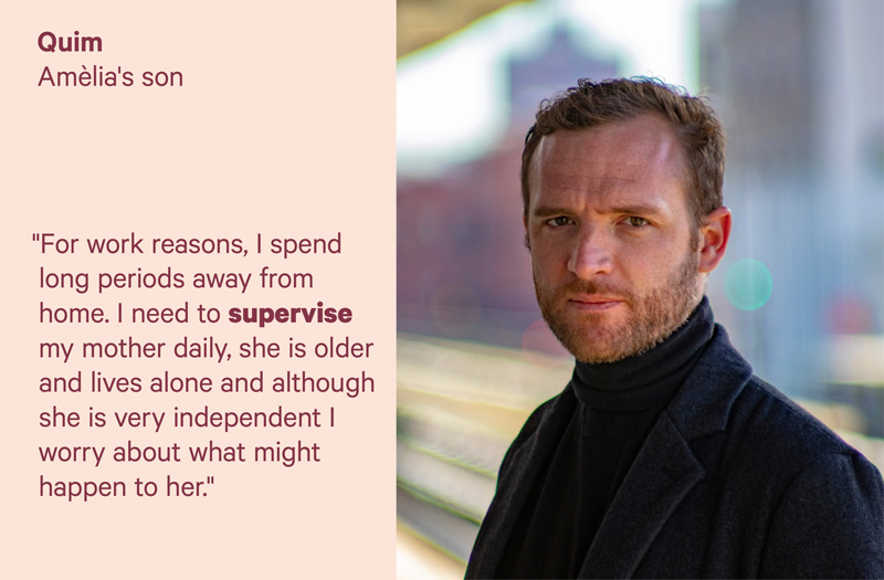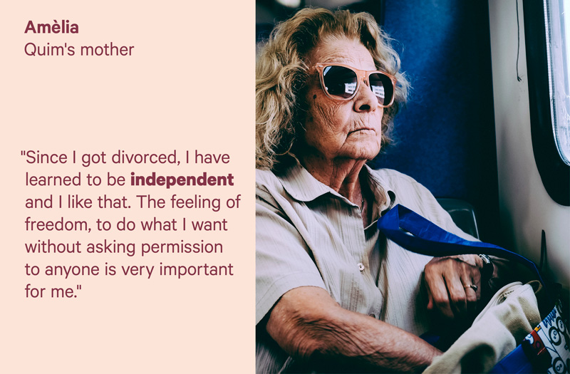 The secondary User Persona is Amèlia, Quim's mother. She is a 80-year-old retired woman. She got divorced from his husband 25 years ago and since then she lives alone at her home.