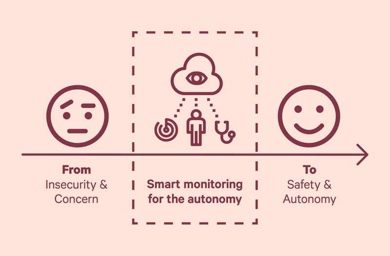How can we ensure that the experience of supervision of elderly people by their family caregivers is immediate and easy to use by both parties and that the information is reliable and at the same time meets the values of respect for privacy and self-esteem?