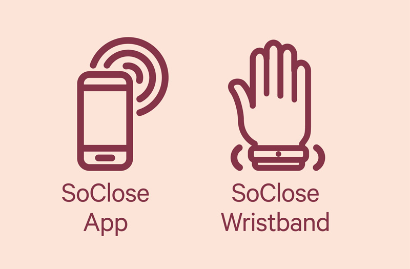 It consist of two elements: the SoClose App, on the one hand, and a wearable SoClose Wristband paired with the app and worn by the beloved under supervision, on the other: