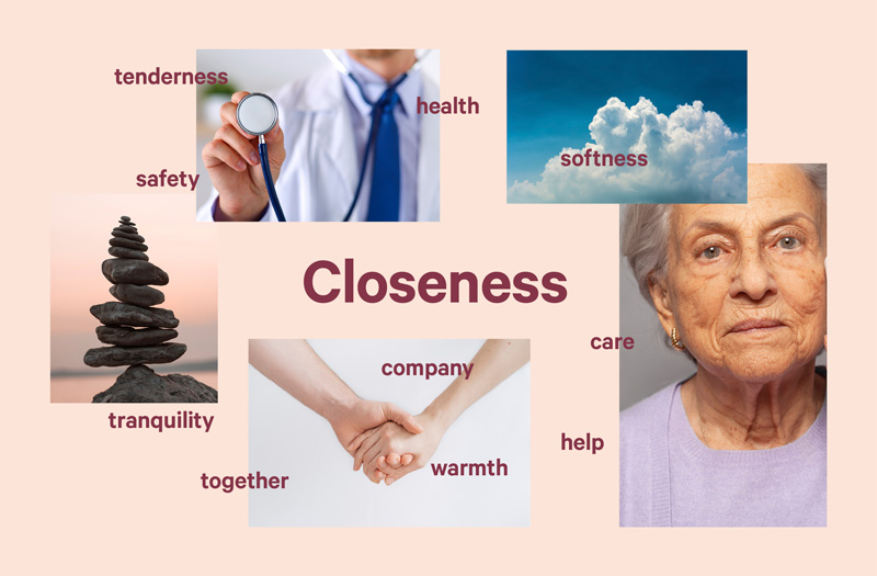 Tenderness, health, safety, tranquility, company, care, softness, warmth…all of them connote closeness and graphically hold the project.