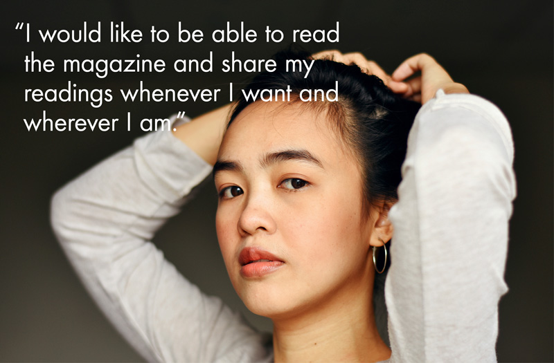 We defined the user persona, Paula, a 19 years old creative that wants to be an artist and connect with people around the world. She reads voraciously, everywhere, anywhere — in bed, public transportation, with friends, out loud, for her projects, etc.